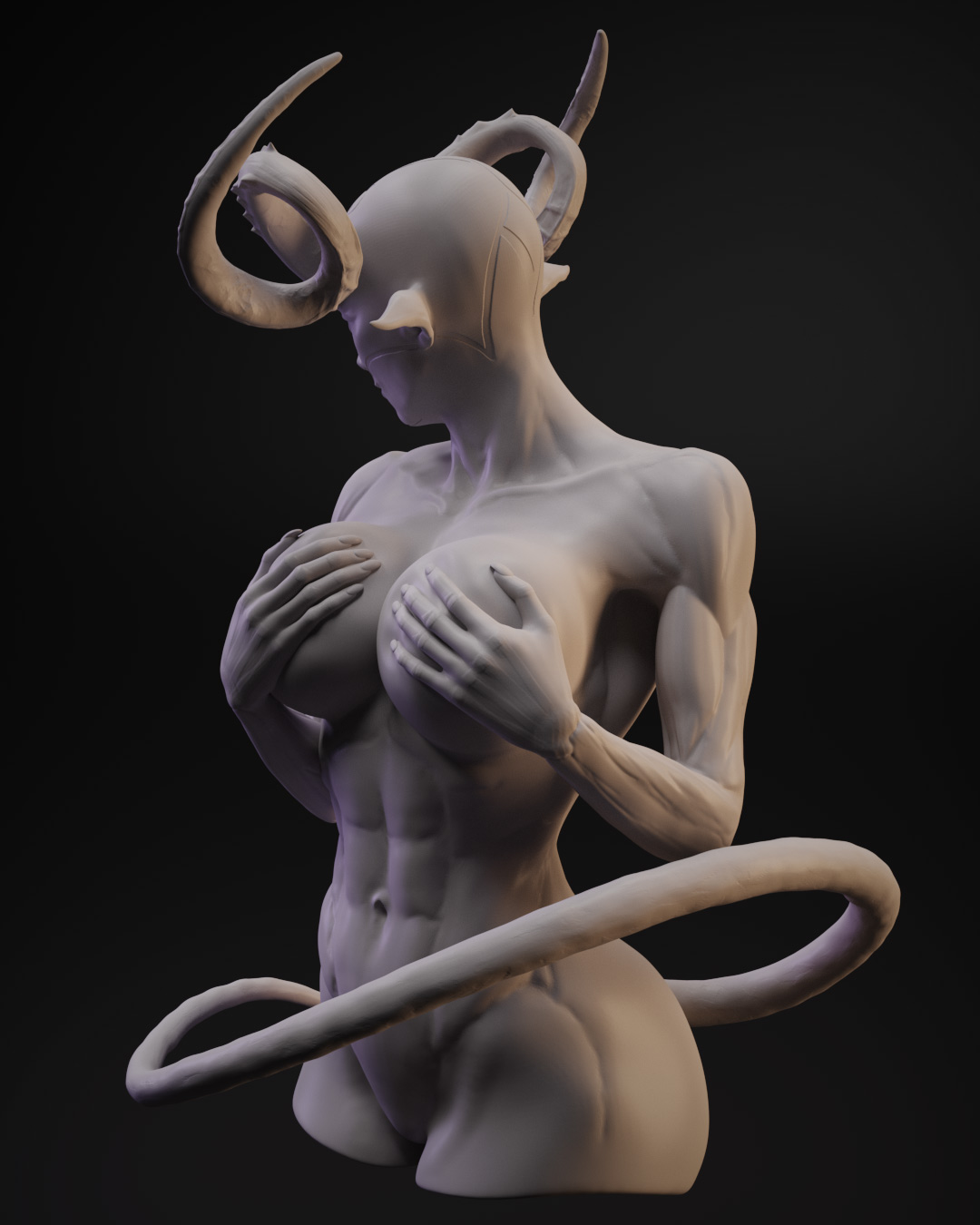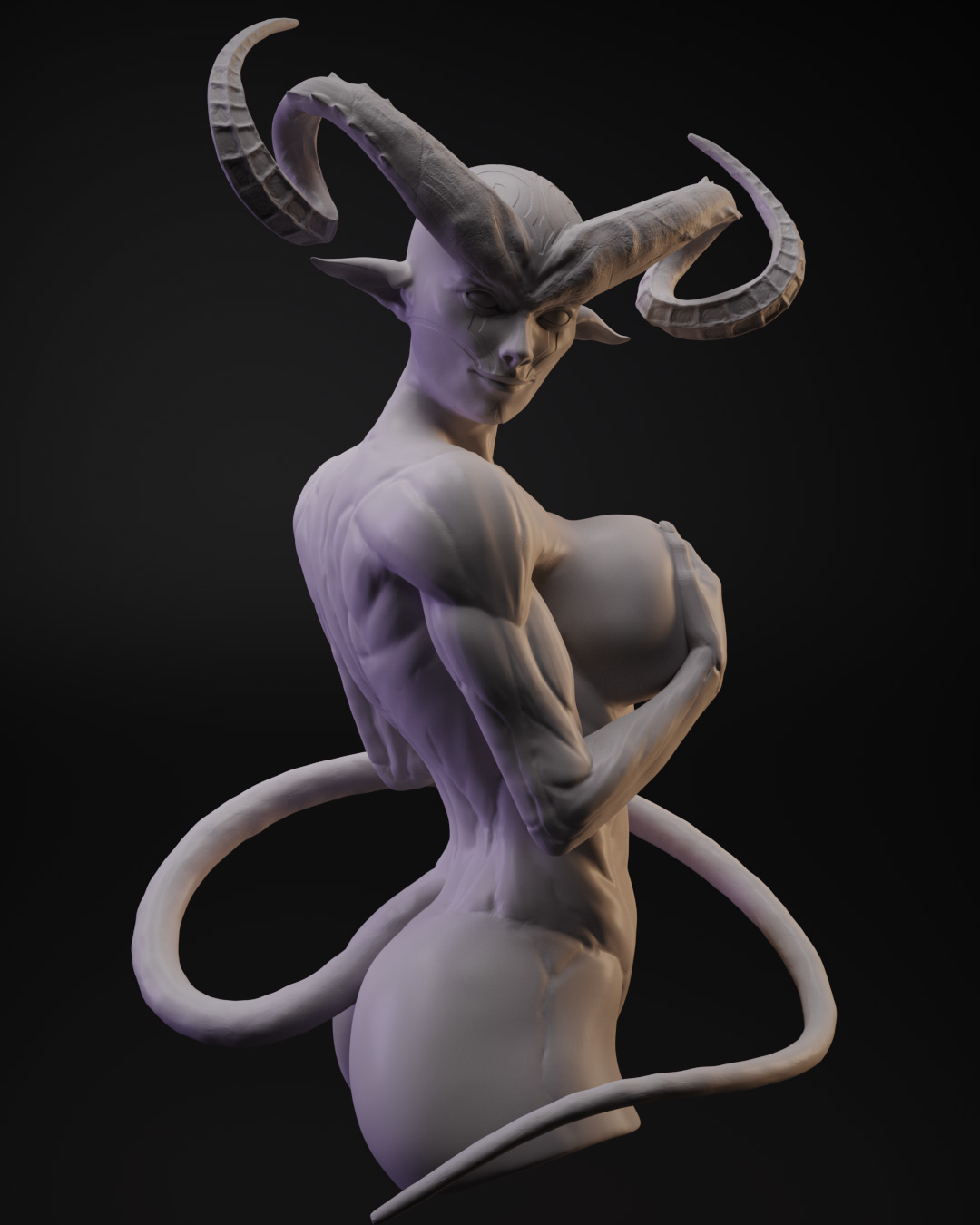 This very sexy demon bust was a blast to sculpt, now it’s your time to have a blast printing her