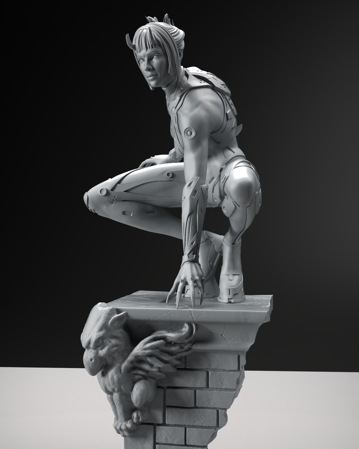 She’s standing on top of a building searching for her next prey.