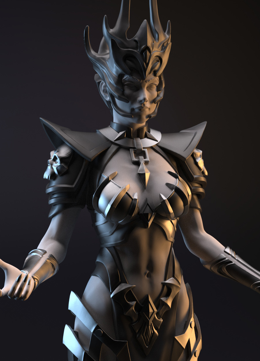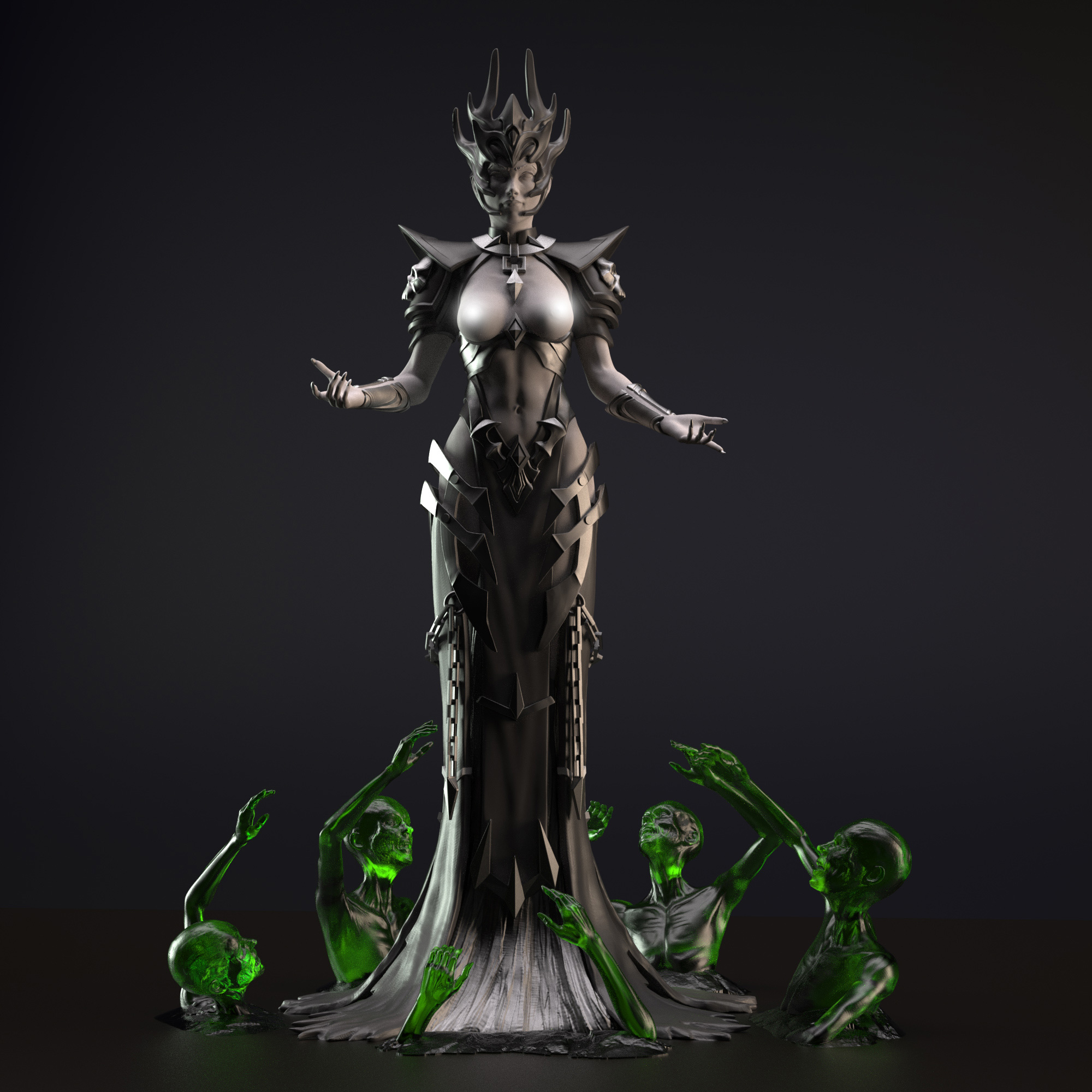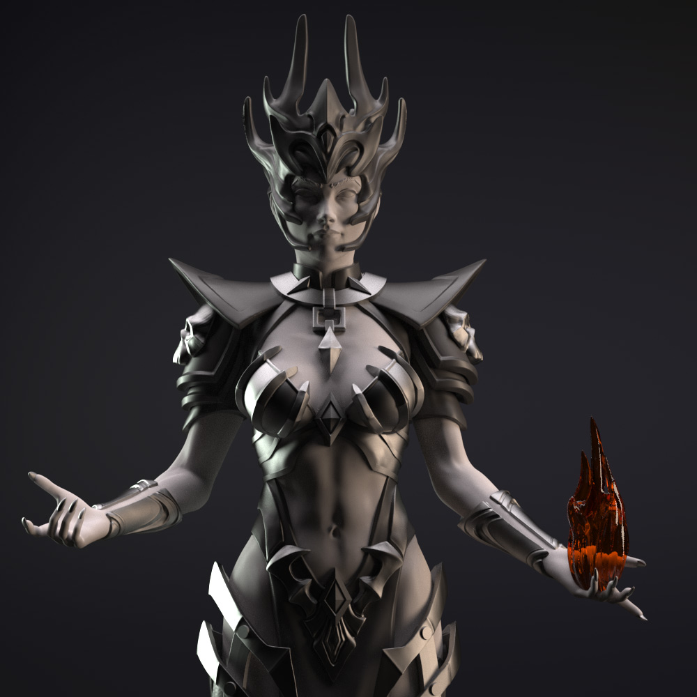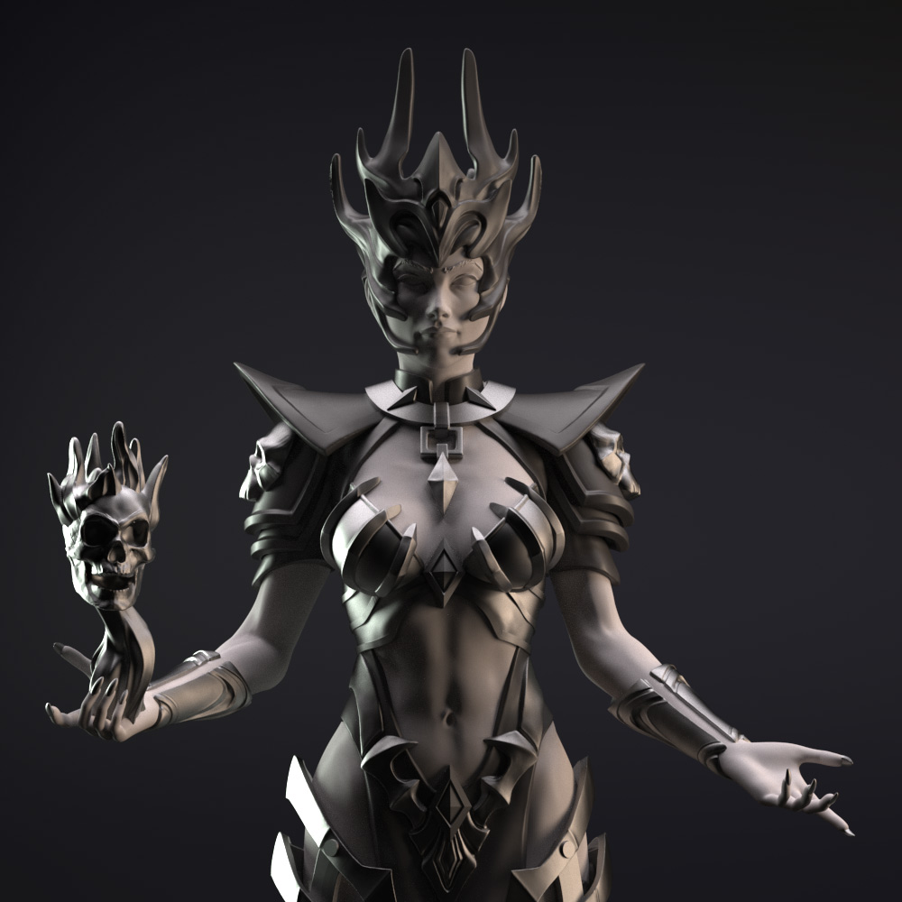 Neycrom, the priestess of Death, levitating off the ground, she invokes her army of deads to fight for her.