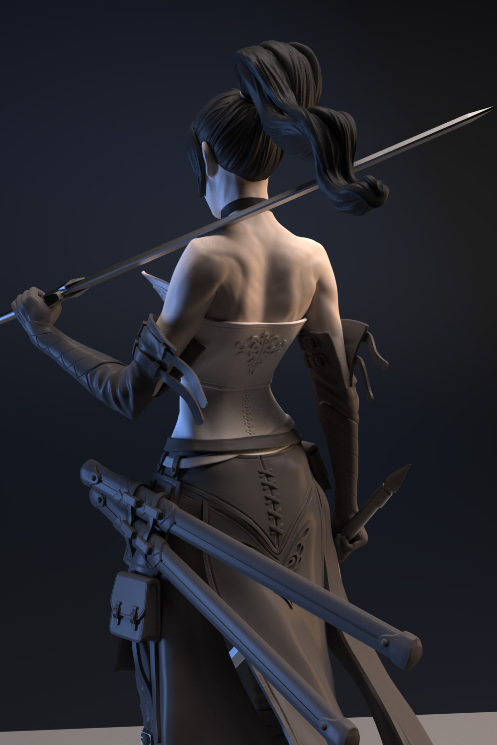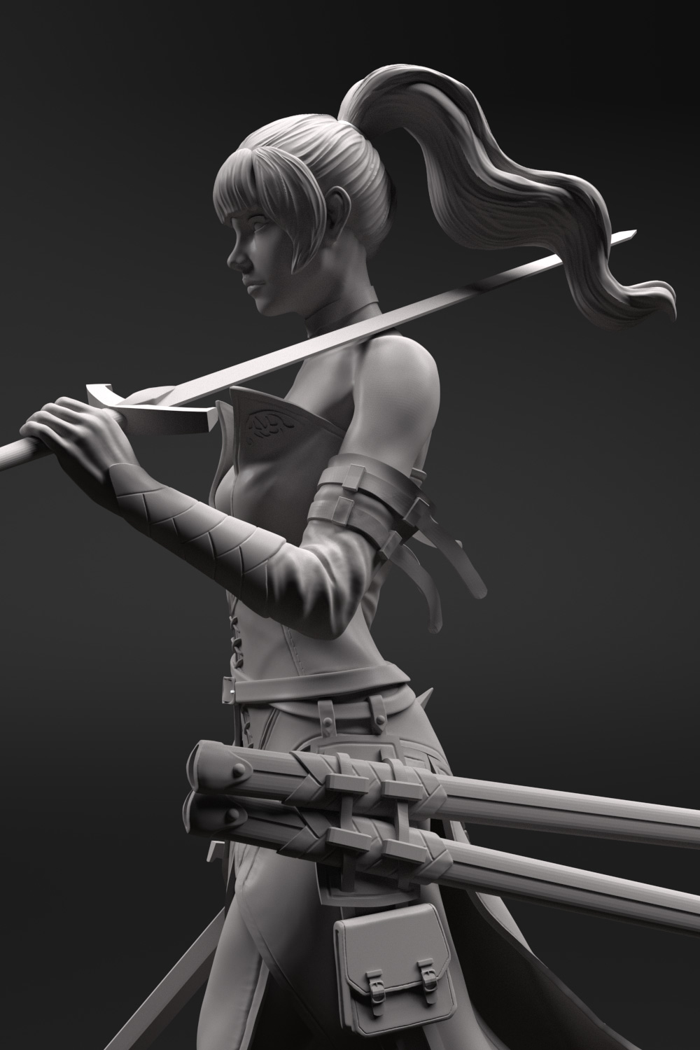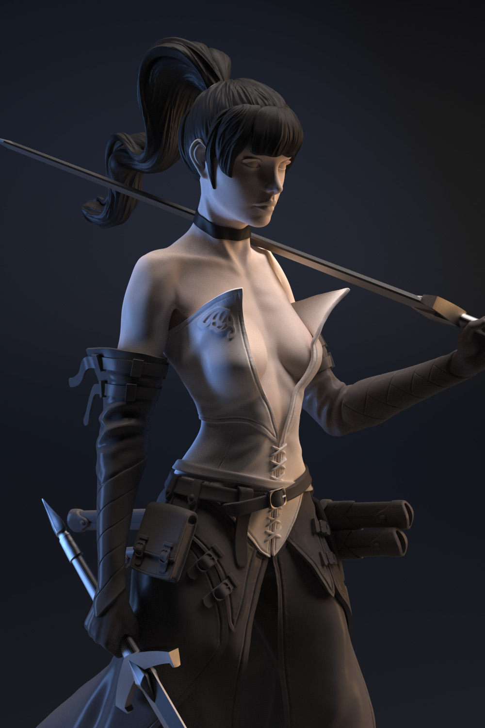 Shiwa, the swordmaster, this thin athletic fighter is quick to deliver death with her two swords.